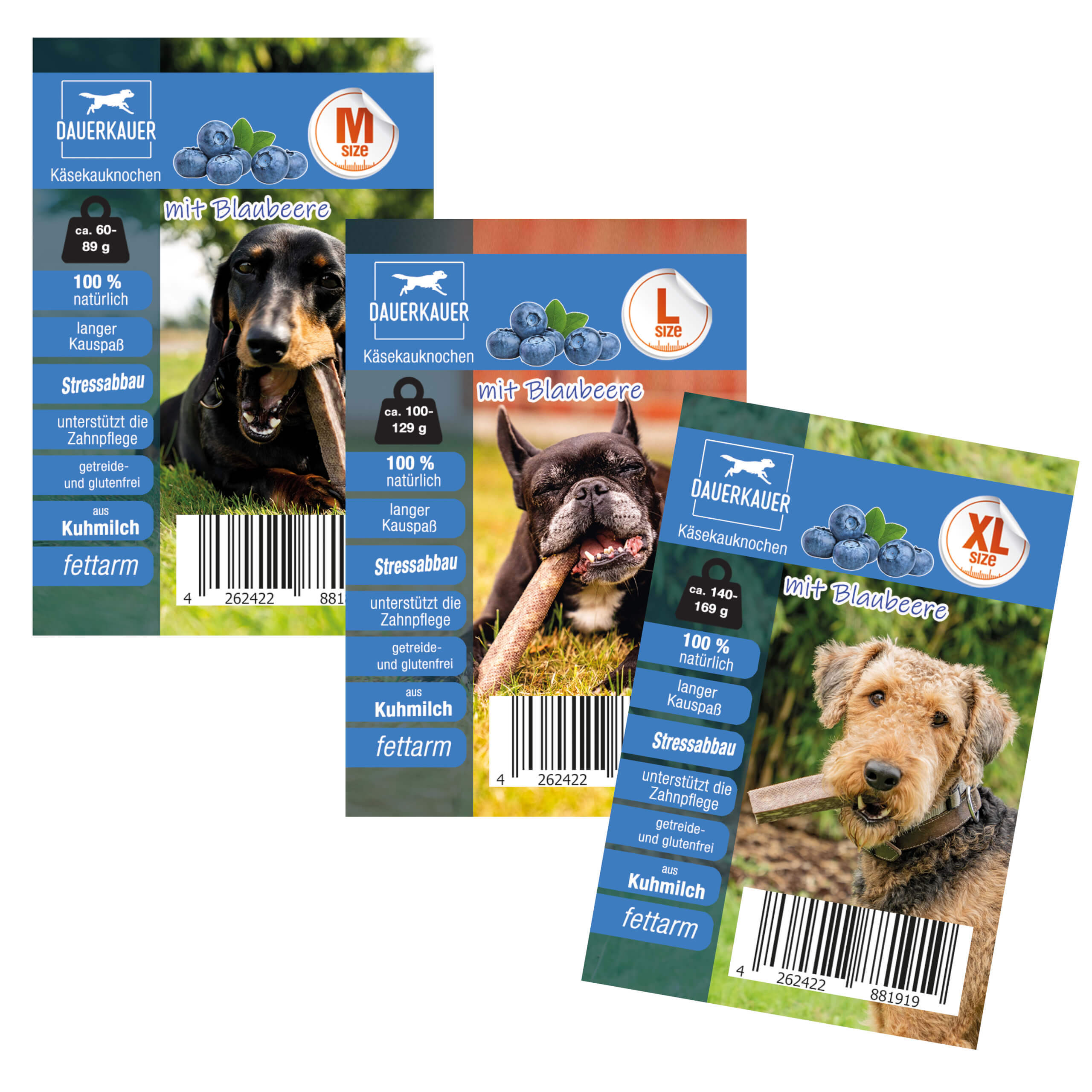 Unseren Dauerkauer gibt es in 10 verschiedenen Größen. Abgestimmt auf die Hundegröße, bzw. die Beißkraft.